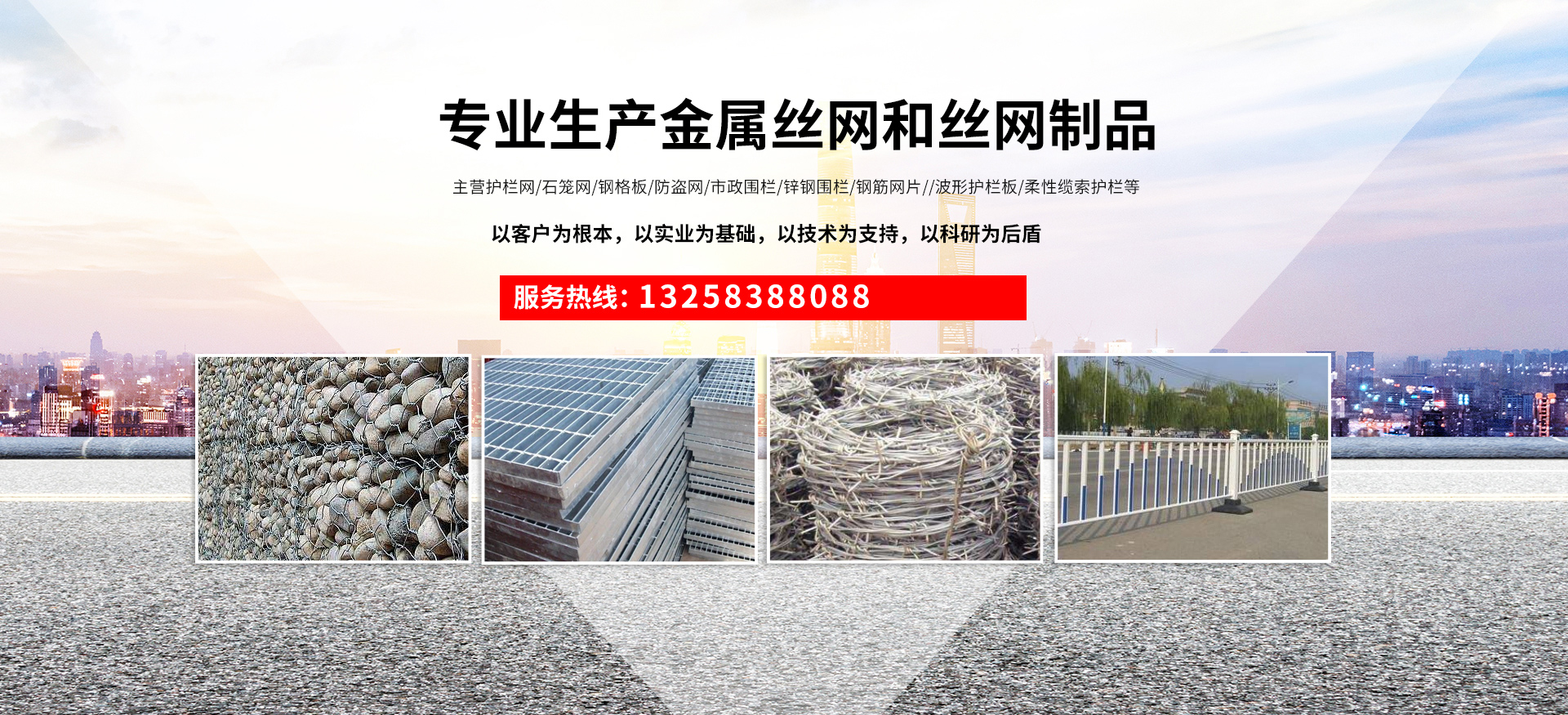 成都宏旭金屬絲網(wǎng)制造有限公司主營護欄網(wǎng)系列、石籠網(wǎng)系列、鋼格板、防盜網(wǎng)、市政圍欄、鋅鋼圍欄、鋼筋網(wǎng)片、聲屏障系列、波形護欄板、柔性纜索護欄、SNS邊坡防護網(wǎng)等其他絲網(wǎng)類產(chǎn)品。特殊規(guī)格可加工定做,也可根據(jù)客戶來圖來樣定做。自創(chuàng)業(yè)以來,公司一直堅持市場為導向,以客戶為根本,以實業(yè)為基礎,以技術為支持,以科研為后盾,集科研、生產(chǎn)、經(jīng)營為一體,不斷研制開發(fā)新產(chǎn)品,開拓市場,走綜合發(fā)展之路。多年來,公司憑借過硬的質(zhì)量,良好的信譽、優(yōu)質(zhì)的服務、合理的價格,贏得了市場和商家的一致好評。